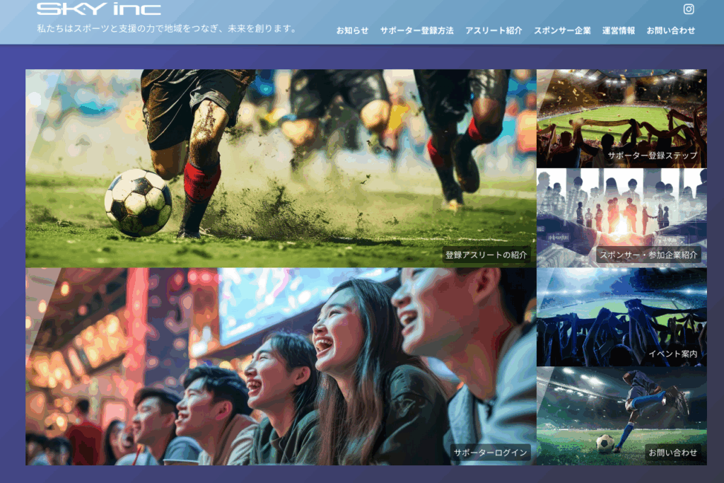 S-K-Yオフィシャルサイト、アスリートとサポータを繋げるオンラインサロンプロジェクトにおけるよりよい環境を提供させていただくべく既存サイトの完全リニューアルを行いました。